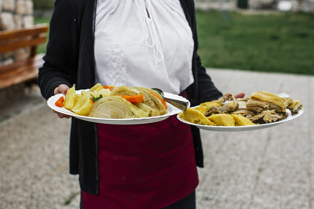 The experience concludes with a premium, multi-course traditional lunch at a local agrotourism estate. Enjoy regional specialties prepared using local ingredients, including prosciutto, cheese, homemade bread, a traditional main course such as peka or slow-cooked meat with side dishes, dessert, and water. Served in a relaxed rural setting, this meal is a true highlight of the day and an essential part of the Dalmatian hinterland experience.