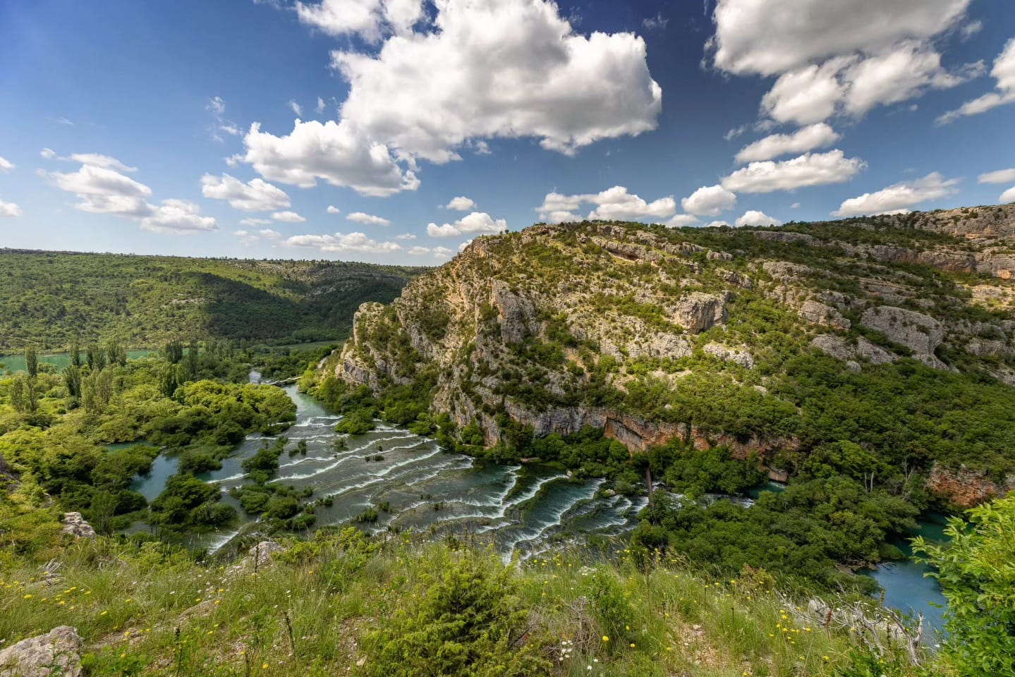 Your journey begins with a scenic drive through rural landscapes and small villages, leading to some of the park’s most impressive yet seldom-visited highlights. You’ll start with the breathtaking Manojlovac Waterfalls, one of the most powerful sets of falls on the Krka River. Then continue to the serene Roški Slap, framed by lush vegetation and limestone formations.